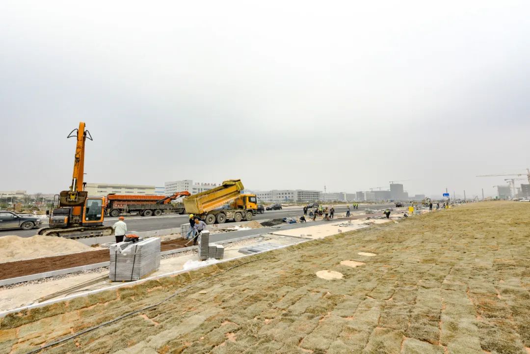 一二級開發(fā)交叉實(shí)施難度大,富山工業(yè)園二圍北片區(qū)園區(qū)配套道路工程緊貼廠房地塊紅線,與廠房項(xiàng)目同步建設(shè),交叉施工。快速施工完成的廠房成為道路施工過程中重要的保護(hù)對象,施工環(huán)境較為復(fù)雜。