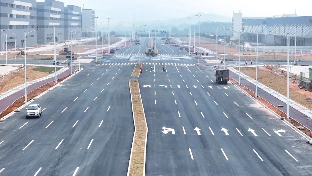 2024年1月30日,雷蛛大道中段、欣港路東西、馬山北路東西、中心西路及濱港路北段等約6公里道路按預(yù)定計劃建成通車,富山工業(yè)園二圍北片區(qū)初步形成“一大環(huán)、兩小環(huán)”交通路網(wǎng),基本滿足片區(qū)內(nèi)各廠區(qū)出行需求。