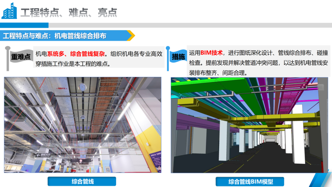 本次獲得“2023-2024年度中國(guó)安裝工程優(yōu)質(zhì)獎(jiǎng)(中國(guó)安裝之星)”關(guān)鍵點(diǎn)在于,橫琴口岸及綜合交通樞紐工程由A區(qū)B區(qū)、C區(qū)主體建筑及南北側(cè)交通平臺(tái)組成,機(jī)電施工內(nèi)容包括建筑給排水及采暖、通風(fēng)與空調(diào)、建筑電氣三個(gè)分部工程。作為一個(gè)大體量機(jī)電工程,項(xiàng)目機(jī)電系統(tǒng)多、綜合管線復(fù)雜。在項(xiàng)目建設(shè)過(guò)程中,承建團(tuán)隊(duì)運(yùn)用BIM技術(shù),對(duì)圖紙進(jìn)行深化設(shè)計(jì)、對(duì)管線綜合排布并進(jìn)行碰撞檢查,提前發(fā)現(xiàn)并解決管道沖突問(wèn)題,以達(dá)到機(jī)電管線安裝排布整齊、間距合理,確保了本次順利“摘星”。